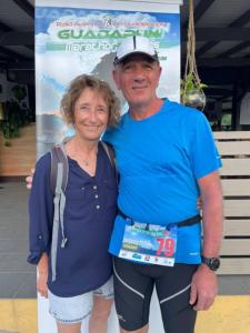 Carine & Bertrand Cartal 01 ARBENT Habitués aux pentes du Jura mais première participation à la Guadarun pour nous. Prêts pour l'averse tropicale !